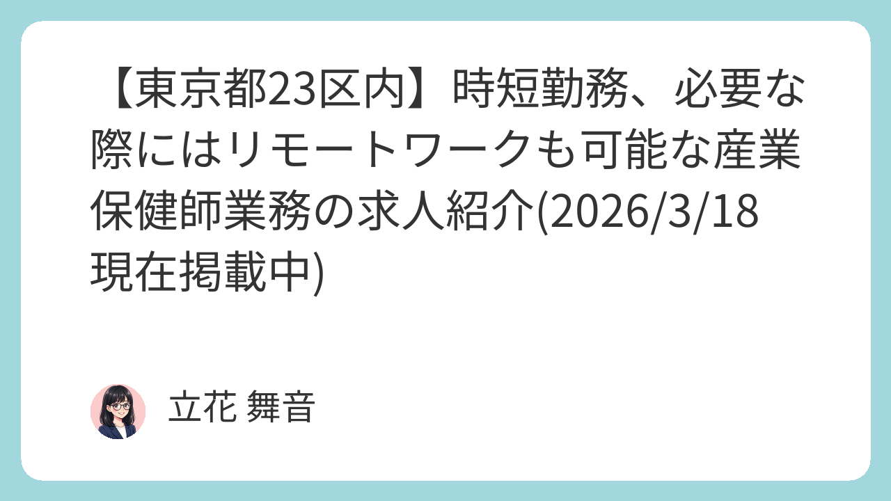 ・育児や家庭と両立しながら産業保健分野で働きたい方
