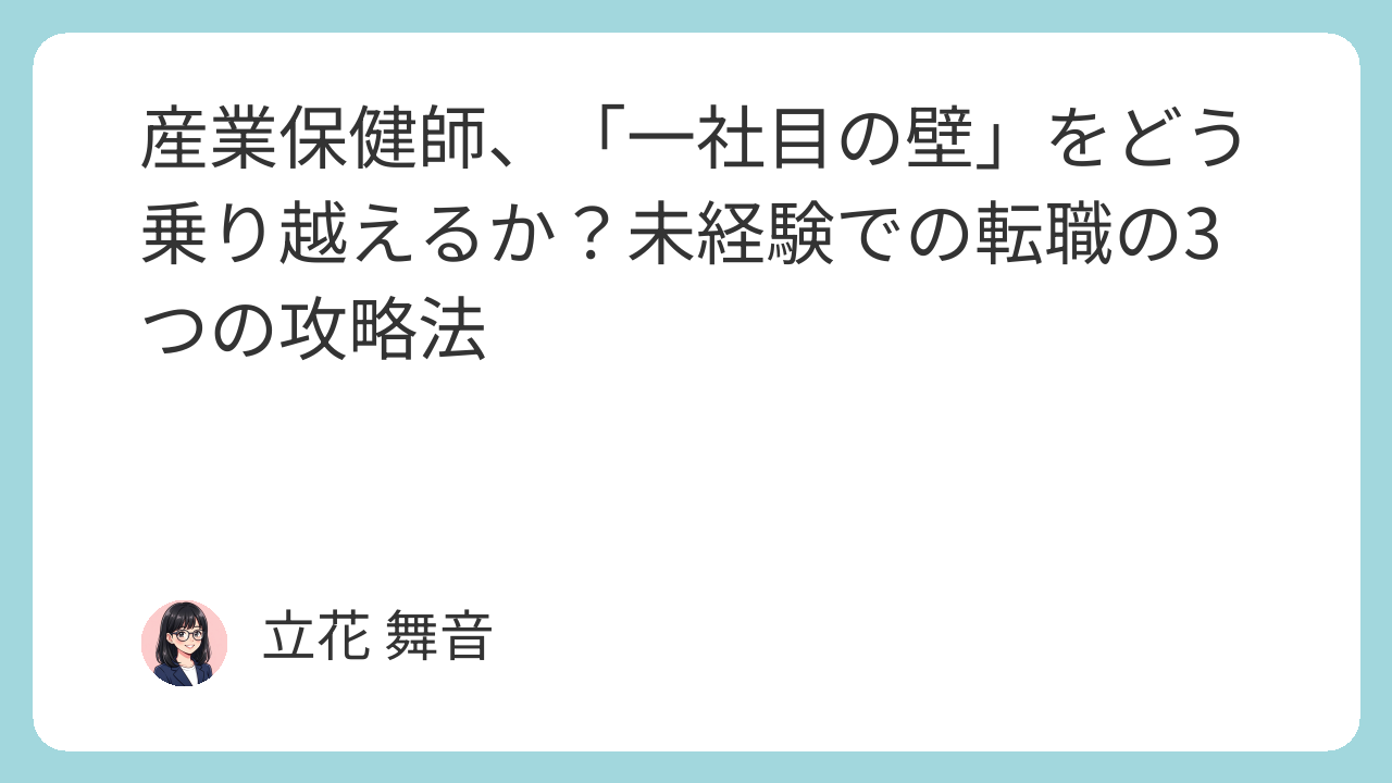 こうした状況の中で、未経験者が産業保健師になるためには、どうしてもこの「一社目の壁」を突破する必要があります。こちらの記事では、そのための現実的な攻略法について解説します。ぜひ転職のご参考にしていただければと思います。