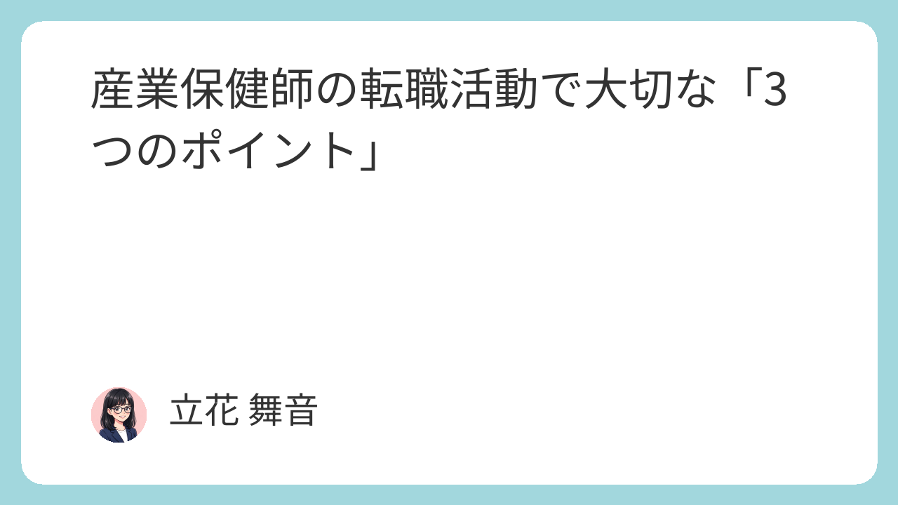 看護師としての勤務経験として、やはり3〜5年程度を目安に、現場での基礎スキルを積んでおくと転職活動が有利に進む可能性は高いと思います。また、プラスアルファとして、比較的とりやすい資格として衛生管理者があり、この資格も書類選考レベルでは加点に働いてくれる可能性はあると思います。やや難度は上がりますが、産業カウンセラーの資格などもあった方が有利になる可能性はあります。